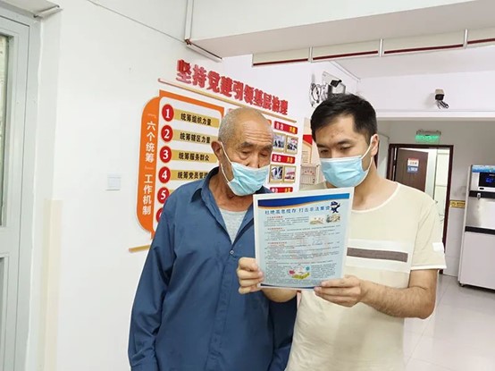 工作人員在戶(hù)外向老人宣傳防范詐騙知識