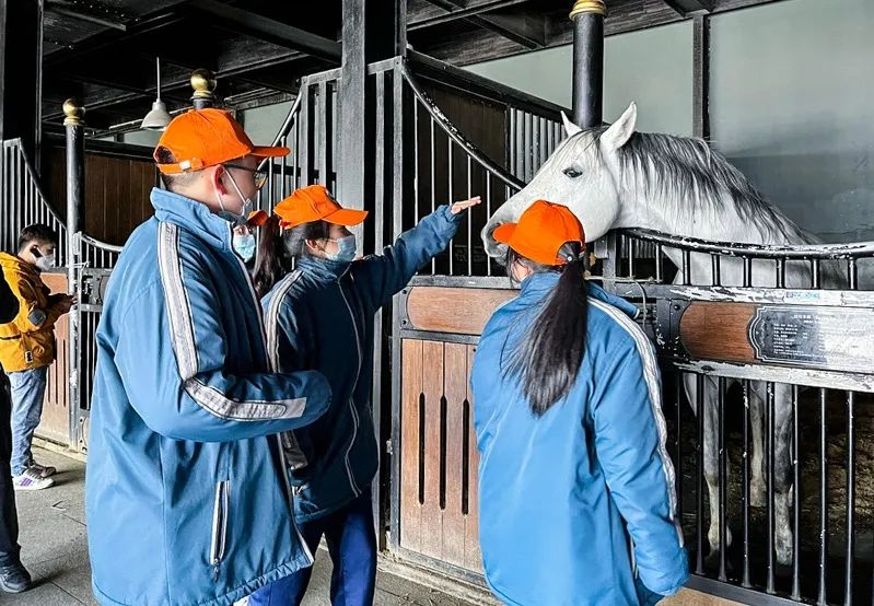 學(xué)生們參觀(guān)珍稀動(dòng)物普氏野馬