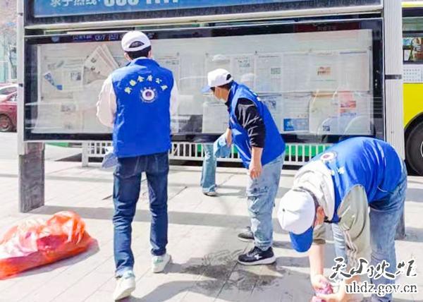 拿著(zhù)小鏟、水桶、毛巾等工具,烏魯木齊晚報社(烏魯木齊晚報集團)志愿者對燈桿上的小廣告一一清理。粘貼牢固不易清理的,就用手將其撕離,再借助鐵刷子、墻刷、鏟刀等工具進(jìn)行徹底清理。