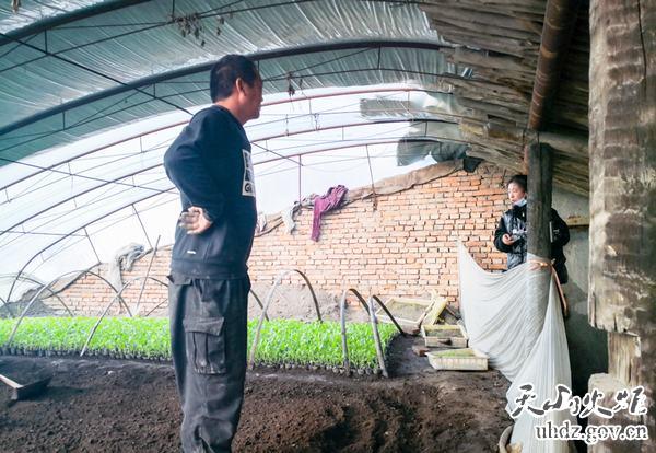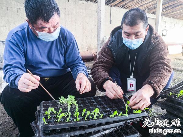 春耕期間,村民們搶抓農時(shí)忙碌在田間地頭,工作隊隊員們也忙碌了起來(lái)。在村民錢(qián)建國的大棚里,油亮亮的上海青菜苗長(cháng)勢喜人,翠綠的油麥菜苗子惹人喜愛(ài)??吹藉X(qián)建國正在忙著(zhù)栽菜苗,新聯(lián)村第一書(shū)記、工作隊隊長(cháng)盛文林帶領(lǐng)工作隊隊員連忙上前幫忙,幫助他把大棚里長(cháng)出的菜苗移散開(kāi),讓菜苗有空間繼續生長(cháng)。