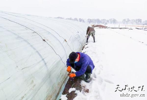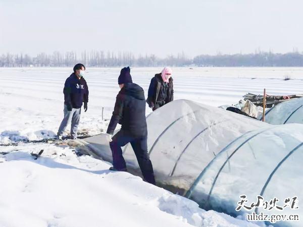 黨員干部清雪扣棚,為大棚覆膜