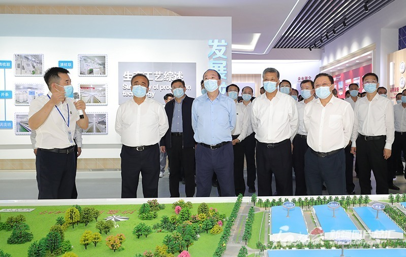 7月9日,黃坤明、馬興瑞、王偉中、艾爾肯·吐尼亞孜在位于兵團第三師圖木舒克市的新疆東純興集團,詳細了解項目建設、運營(yíng)及帶動(dòng)就業(yè)情況。石榴云/新疆日報記者 崔志堅攝