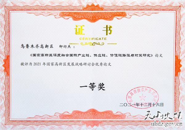 【喜報】烏魯木齊高新區(新市區)機關(guān)干部柳衍杰研究論文榮獲2021年國家高新區發(fā)展戰略研討會(huì )一等獎