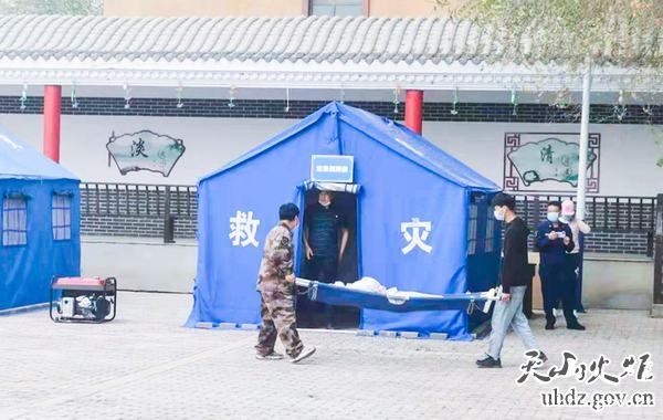 六十戶(hù)鄉星火村防震減災演練中村民們有序避難
