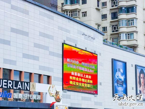 匯嘉時(shí)代大屏播放新《安全生產(chǎn)法》重點(diǎn)宣傳內容