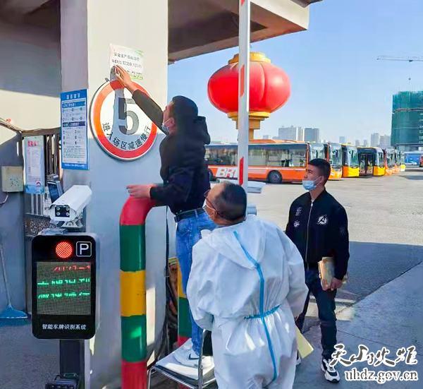 BRT車(chē)場(chǎng)正在張貼安全生產(chǎn)監督舉報宣傳單