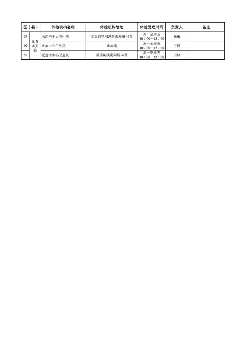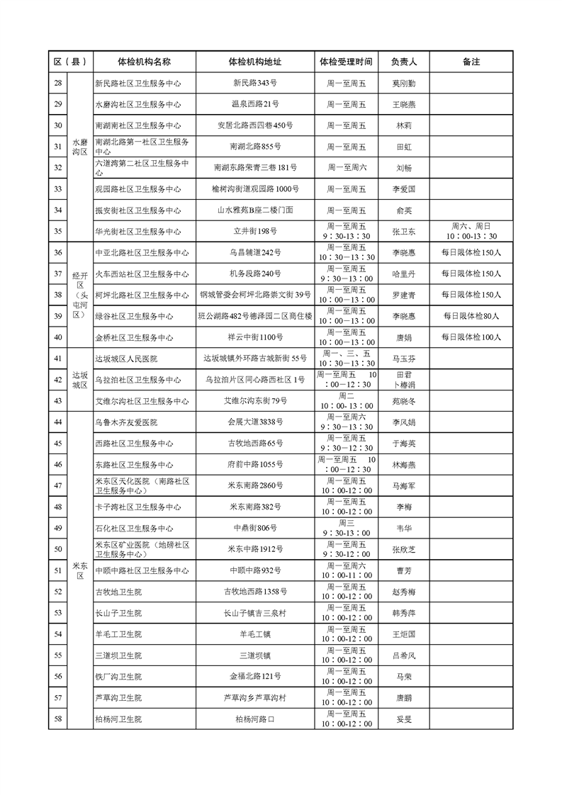 2023年烏魯木齊市從業(yè)人員預防性體檢醫療機構信息公示