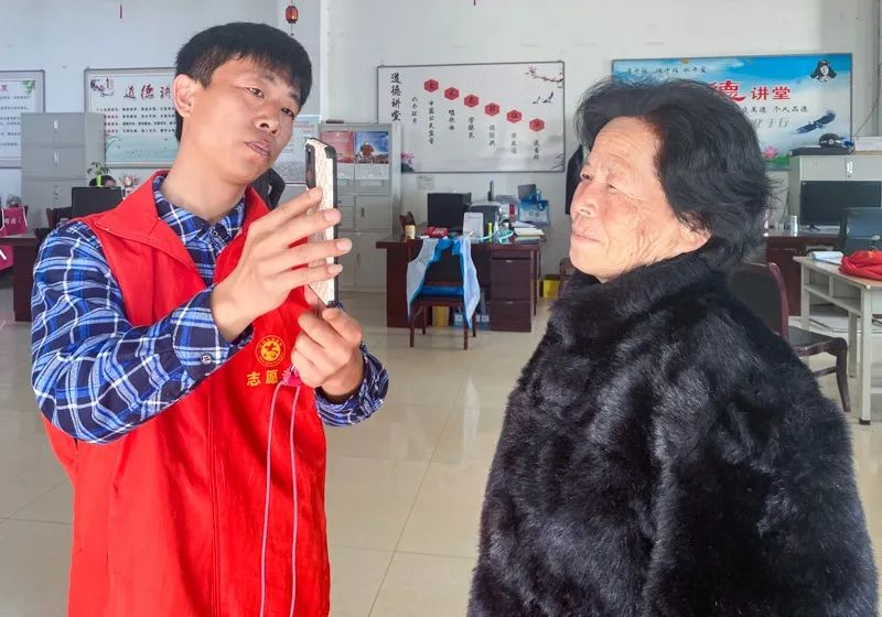 志愿者高志剛在村委會(huì )協(xié)助老人進(jìn)行人臉認證