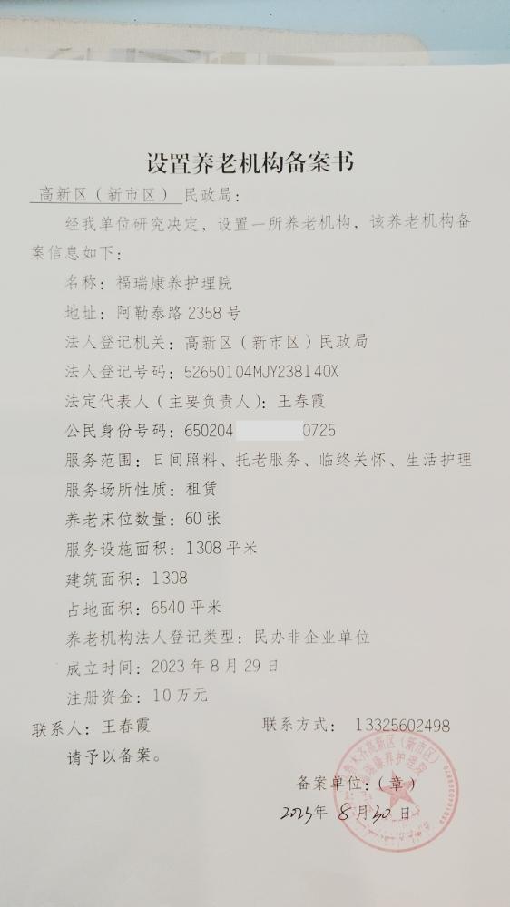 烏魯木齊高新區(新市區)福瑞康養護理院設置養老機構備案書(shū).jpg