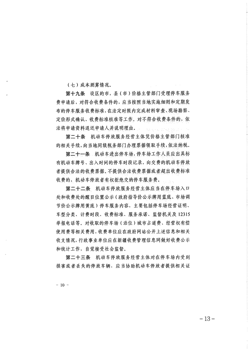 關(guān)于貫徹《新疆維吾爾自治區機動(dòng)車(chē)停放服務(wù)收費管理辦法》的通知